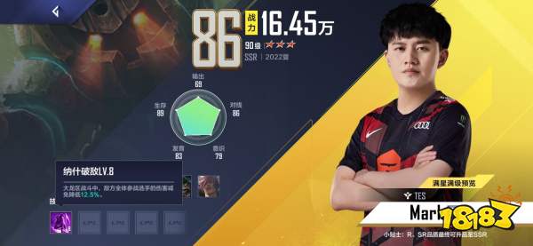 Mark的技能能够加强团队大龙作战的能力,此外也是0氪最容易凑的TES的全员金卡阵容中不可或缺的一员。缺点是缺少选手羁绊,而且只有一个招牌。