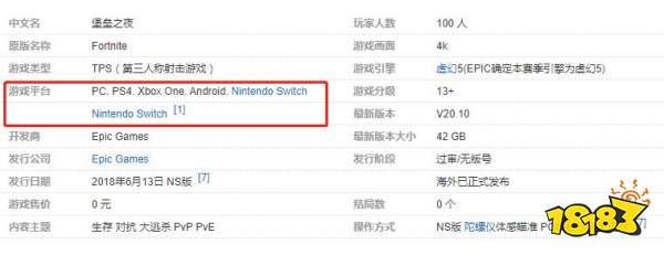 2、游戏支持的平台有Play Station 4、Xbox One、Nintendo Switch、PC Epic平台和手机客户端。