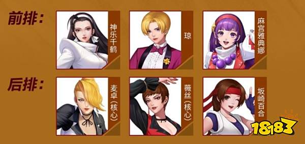 全明星激斗穿透妹妹队阵容前排:神乐千鹤、琼、麻宫雅典娜,后排:麦卓(核心)、薇丝(核心)、坂崎百合,麦卓和薇丝的穿透能力为队伍前期主要的克敌手段,再辅以妹妹队的各种连携效果提升格斗家自身的面板、输出、防御等各方面的能力。