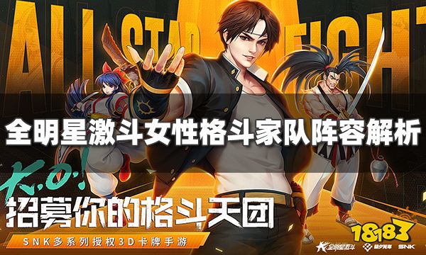 全明星激斗女性格斗家队阵容由SSR神乐千鹤+SSR不知火舞+SR琼组成,三人组队可激发多个连携效果,增加物理防御和攻击等属性,另外还可获得我方女性格斗家格斗率提升15%的战斗连携。