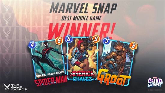 知名年度遊戲獎項「The Game Awards(TGA)」2022年度頒獎典禮於美國時間 12 月 8 日在洛杉磯正式舉行,並於全球同步直播。其中《漫威:瞬戰超能》(MARVEL SNAP)在發布僅僅不到 2 個月時間,成功獲頒 TGA 2022 年度最佳手機遊戲獎項。
