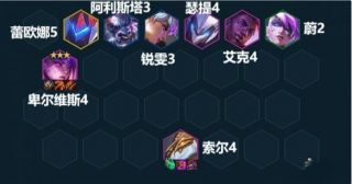 阵容质量:除了蕾欧娜最好全员2星,血量经济良好可以尝试把卑尔维斯或者龙王追3,尤其是卑尔维斯,这张卡目前比较冷门,经济允许或者有相关强化符文的情况下还是不难追3的。