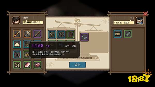 天生弱鸡:全先天属性值(膂力等)永远为1;心情不会减少;送礼效果+500%;每次战斗首次遇到致命伤会剩1血不死(达成“弱鸡大侠”结局)