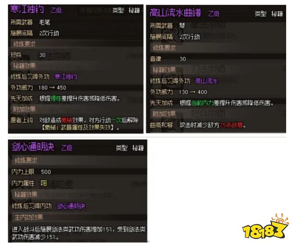 高山流水曲谱:音律类外功秘籍(音律达到200)