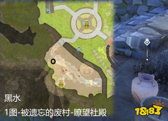 黑水在瞭望社殿有,传送到1图的被遗忘的废村,找到瞭望社殿即可采集黑水。