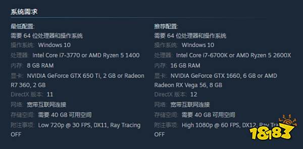 逃生试炼配置要求不算太高,最低配置是操作系统Windows 10,处理器: Intel Core i7-3770,内存:8 GB RAM,显卡: NVIDIA GeForce GTX 650 Ti, 2 GB,可用空间40GB。