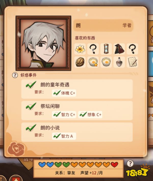 要求:智力A,关系达到挚友