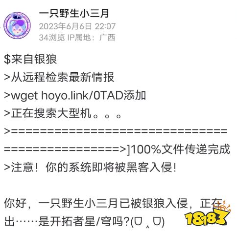崩坏星穹铁道银狼病毒是指崩铁推特上的银狼角色小活动,加入这个活动后,推特账号的头像、主页背景、简介都会被改成银狼已黑入的状态,国内用户知道后也纷纷模仿换上不同表情的银狼头像,并配上被银狼入侵的文案,疯狂玩梗整活。
