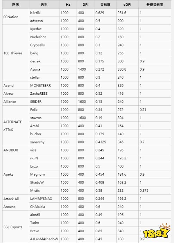 无畏契约职业选手灵敏度一览 全职业选手灵敏度设置
