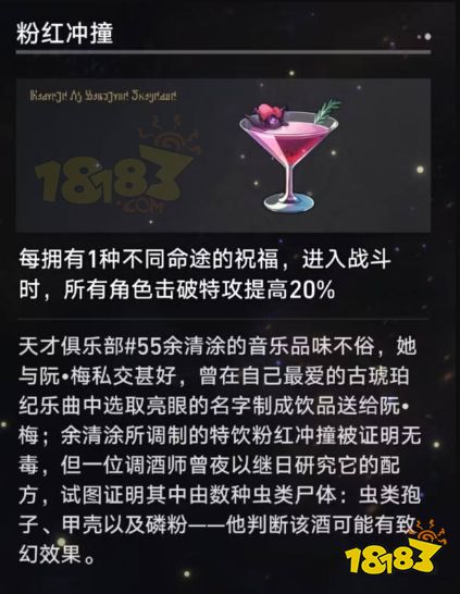值得注意的是:天才俱乐部#余清涂事件并不是一定会给奇物,有一定概率调制出来毒酒,就会进入战斗,最后可以获得一个祝福。