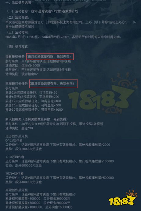 2、不过崩铁发视频打卡领星琼的活动是先到先得,大家尽量每天都打卡哦。