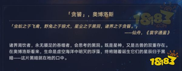 在奥博洛斯看来,生命是虚空海洋中明灭的浮藻,终将随着诞生它们的星辰归于黑暗一一这片黑暗就在祂的口中。