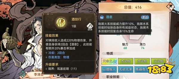 李清圣自身的技能带有特殊的【微醺】效果。在平常战斗当中,李清圣的暴击几率会获得提高。而当李清圣进入了【微醺】状态,那么李清圣造成的暴击伤害会提高非常恐怖的程度。而抽取李清圣的天命,就会让他变成游戏中的大杀器。
