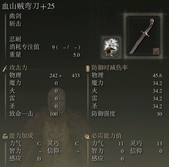 力气没有硬性要求,灵巧最低需要点到13满足山贼弯刀的使用需求,智力不需要加,信仰最少点到25使用黄金树立誓等增益祷告,最好是点到30,这样叠黑焰庇佑之后我们也不会太脆。