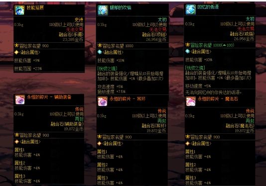 理论上最强大的融合石搭配,“项链”和“戒指”都需要增幅红12才能拉满属性,这还勉强可以接受;不过特殊部位的“传说融合石”就很昂贵了,就算如今已经降价了,一件12技攻融合石也要3~4亿金币;