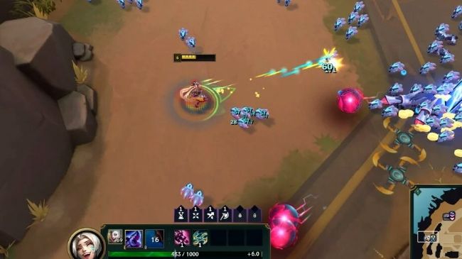 在无尽狂潮模式中,英雄的技能略有不同。例如,金克丝的普通攻击是她在《英雄联盟》中的基础攻击的升级版,机枪形态的攻击,但可以在射程内造成AOE的穿透伤害。当你达到三级时,会解锁金克丝的第二个技能——鱼骨头,这个技能可以向目标区域发射多枚火箭并在撞击时爆炸,非常适合在被困住时逃生,也是前期发育的手段。