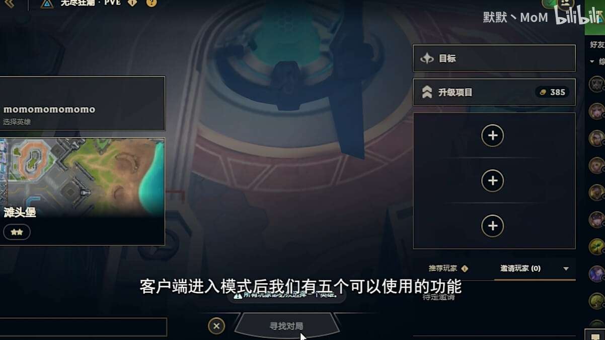 今天给大家带来新模式无尽狂潮的攻略,客户端进入模式后,我们有五个可以使用的功能,左上角选择英雄,初始只有金克丝和萨勒芬妮,如果单人比较推荐金克丝,如果组队推荐萨勒芬妮,可以保护队友,左下角选择地图,总共四张地图,三个难度,第五张地图匹配模式,且只能选择中等难度,需要通关简单难度,四张地图才能解锁。