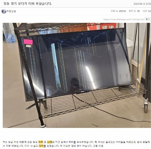 在韩国论坛fmkorea上,一名玩家表示作为JDG粉丝,在看完当晚的比赛后怒而砸碎了电视。