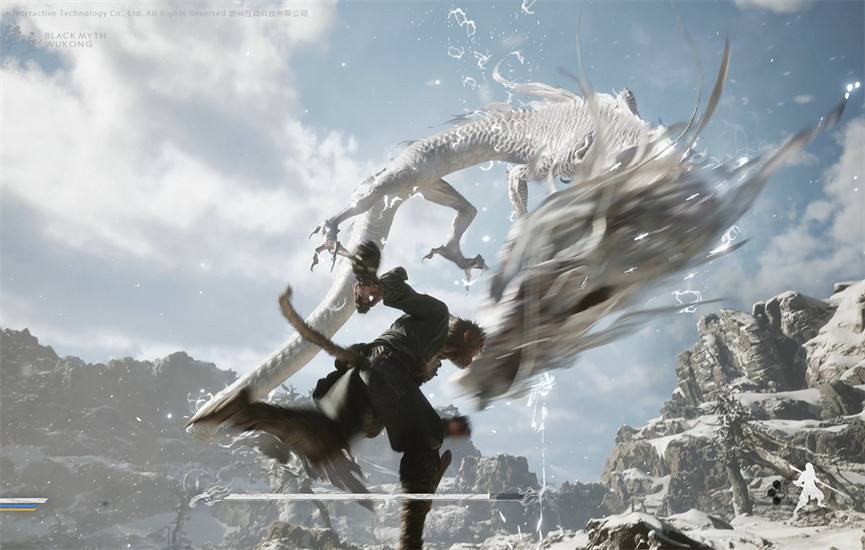 应对讲解:反应较快的玩家可以在灵虚子起跳一瞬间进行闪避,这个时机可以保证安全,如果闪避不够熟练也可以提前按住定身术,在灵虚子起跳前立刻定住它,将其攻击动作打断,并进行一段可观的输出循环。