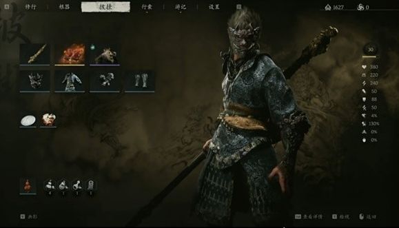 服装一套在第二章开局不久就能全做出,依靠高棍势和定身术基本没有卡关,两三次基本都过了,25级加上打坐的技能点就基本成型,因为游科给的基础血条和耐力很大方感觉前期完全不用加(当然可能我被魂游调教的太好了)。