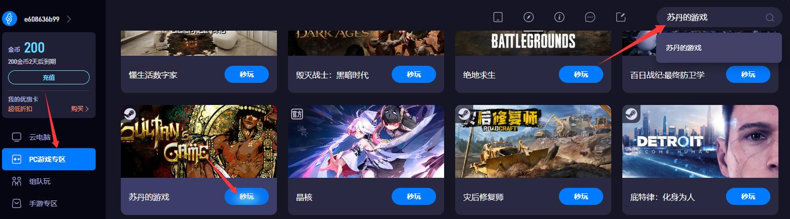 3. 点击开始游戏,系统自动分配云端资源