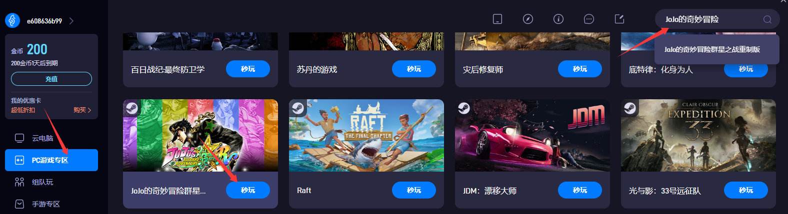 2. 在游戏库中找到《JOJO群星之战》