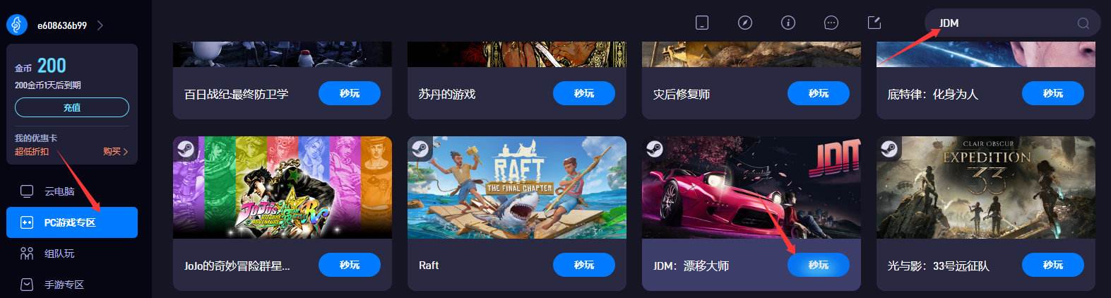 2. 在游戏库中找到《JDM漂移大师》