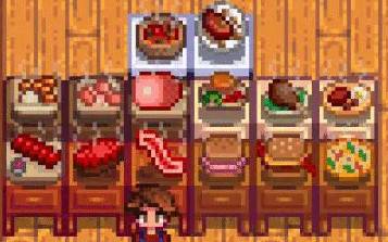 ConcernedApe开发的《星露谷物语》中,烹饪系统虽丰富但食物呈现均为静态贴图,1.6版本虽优化了部分UI,仍缺乏动态交互反馈。原版增益食物的单调表现与玩家对农场生活的细腻追求形成鲜明对比。