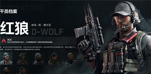 红狼的背景故事在塑造角色形象、推动剧情发展方面发挥了重要作用。他在“沙漠之泉”任务中违抗军令救援被困女童,这一行为不仅展现了他勇敢、果断且心怀仁慈的性格特点,也直接导致他被G.T.I.招募,成为单兵外骨骼系统的首个使用者。红狼的英文代号“D-wolf”源于他父亲的身份——其父亲是三角洲特种部队作战分队成员,三角洲部队的队员们绰号“D-boy”。这种家族传承为他的人物形象增添了更深层次的含义,使他成为连接过去与现在的桥梁。