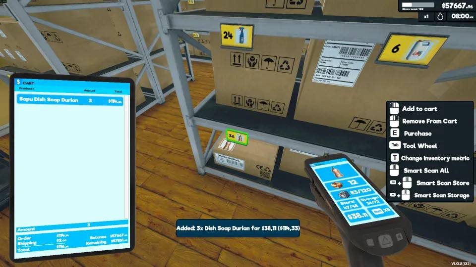 智能扫描仪MOD通过三重技术升级重构补货逻辑。智能检测系统可扫描商品标签、价格标签或实体货箱,自动计算当前货架容量与库存差值,精准推送所需货箱数量。场景适配模块支持三种扫描模式:鼠标中键同步扫描店铺与仓库,Ctrl+中键专注店铺补货,Alt+中键仅处理仓库调配。容错机制方面,MOD会自动跳过已购物车商品,并遵循货架容量上限避免超载。
