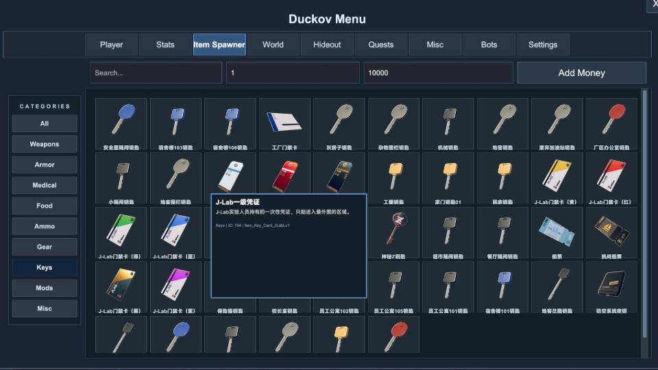 内置修改器MOD为《逃离鸭科夫》带来了全方位的游戏控制能力,通过集成物品生成、属性编辑和玩家状态修改三大核心功能,彻底改变了游戏玩法的自由度。该MOD提供可视化网格界面浏览所有游戏物品,支持一键生成、数量控制和多语言显示,同时包含无敌模式、无限体力、点击传送等实用功能,让玩家能够自定义游戏难度和体验节奏。