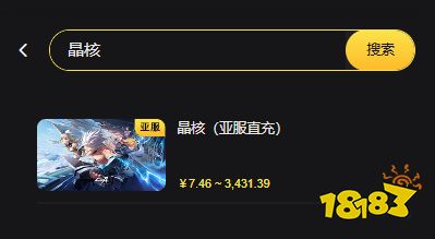 点击搜索结果后,进入晶核亚服的专属充值页面,查看当前支持的充值面额(如金币、月卡、礼包等)。