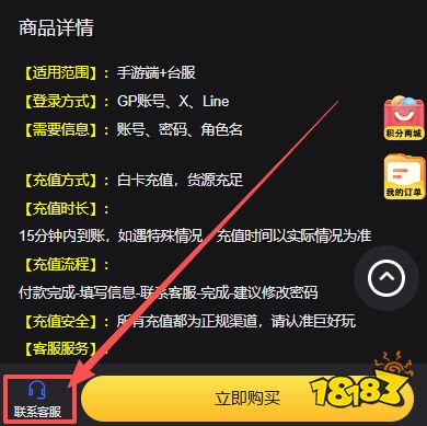 第四步:进入充值页面,在充值前,请玩家下拉充值页面,仔细阅读充值说明,根据自己的需要,选择充值方式。