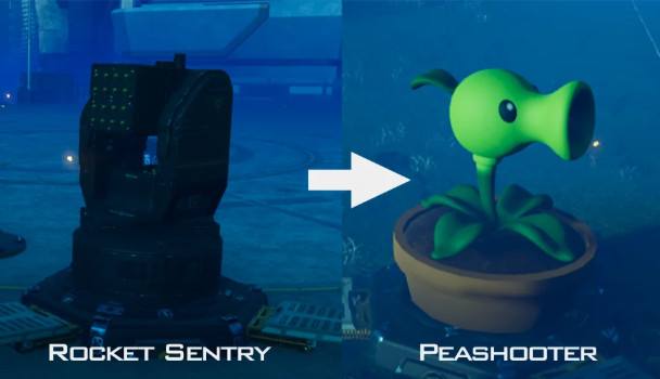 豌豆射手替换火箭发射炮台:原本冰冷的火箭炮台变为憨态可掬的豌豆射手,发射豌豆般的弹药击退敌人,保留原版伤害与射速。