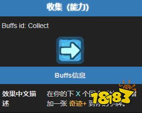 拥有收集状态时,接下来的 X 个回合开始时,手牌中会增加一张奇迹 + 牌。该状态属于计数状态,层数代表未来还能获得奇迹 + 的回合数。