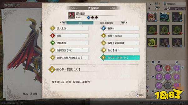 后面稳稳地打基本上不会下来了,平常就是留耐力一直打基础攻击、耐力 70 以上考虑放个蚀龙虫,倒地就放大落龙,没血就补个夜仆或噬龙通常就直接补满了,就算不用技能,普攻时暴击跟自己每回合回血也能回不少,生存压力没啥问题,而且骑乘时也不会中异常状态,整场打下来非常稳定,频道主的影片里是直接骑 99 等去打风雷神总计花了 41 回合。