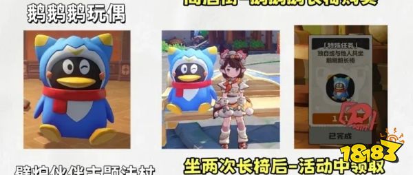 额外福利:坐两次长椅后,可解锁特殊任务,在活动界面领取鹅鹅鹅玩偶装饰。