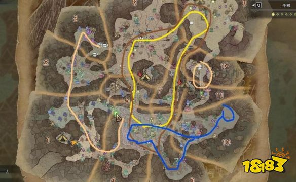 在地图上比较大的几块区域,图中还有一个未标示的为4区域的草食龙领地,即4区最下面那个蛋的位置,后面任务偷蛋就在这里。