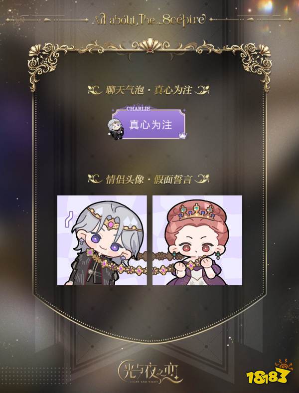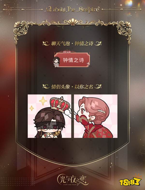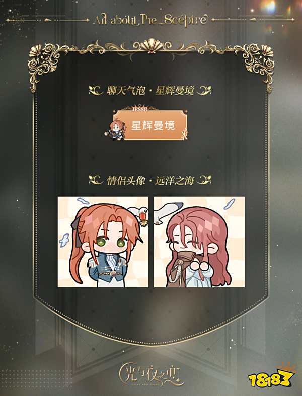 活动期间,将欲海狂澜系列限定灵犀培养至二花,可在限时计划处领取对应专属聊天气泡:【深海秘藏】【钟情之诗】【无尽归途】【真心为注】【星辉曼境】。