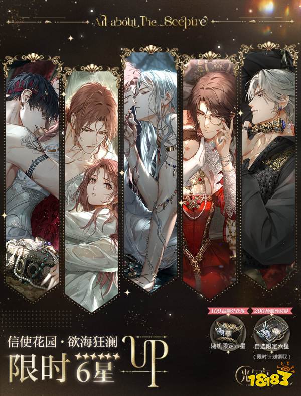 > 活动说明:活动期间将开启限定收信・欲海狂澜,[6星]灵犀 萧逸・堕入深海、[6星]灵犀 陆沉・罪欲同歌、[6星]灵犀 齐司礼・暗域妖歌、[6星]灵犀 查理苏・狮心掠城、[6星]灵犀 夏鸣星・千舸帆影 将限时加入卡池并获得概率UP。