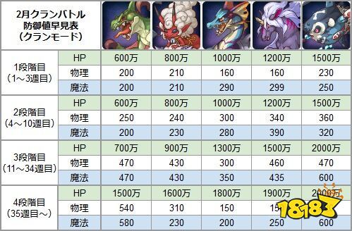 公会战中,1到3周目、4到10周目、11到34周目分为三个阶段,日服35周目后新增了第四阶段,不同阶段boss的技能与属性会有差异,boss的分数倍率也会根据阶段有所上升,如下图。