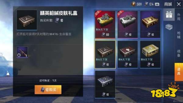 让人啼笑皆非的是,很多玩家竟然还不知道“M416-生命誓言”的获得方式。如图所示,只要进入游戏中的商店,找到道具栏,就可以找到相对应的武器皮肤礼盒。