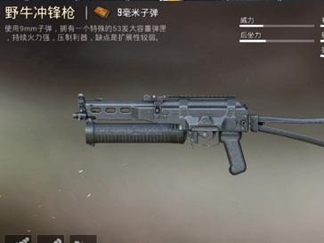 超大的弹匣容量是该枪的最大优势,为玩家在实战对抗中提供了强大的火力压制能力,持续输出能力表现出色。同时,野牛冲锋枪的另一个优势是对于配件的依赖度较低,省去玩家费力搜集配件的麻烦。目前,该枪仅有瞄具、枪口和侧瞄准镜三类枪械配件。从另外一个角度来说,这也是野牛冲锋枪的一个缺点,使得整枪的扩展性较差,不能依靠较多的配件来改善枪械性能,对于一些控枪能力差的新手玩家来讲不太友好。