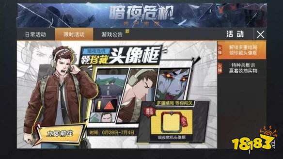 永久珍藏限量“暗夜危机头像框”也等你来拿!如果没领到的话,请尝试多种选项)
