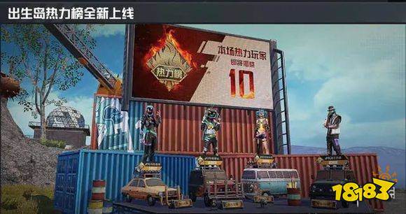 和平精英热力榜《和平精英》的出生岛上出现了一个集装箱的高台,而这个高台的前面,就摆放了4个讲台,其中更是站立了4名神秘人。而讲台上站立的4个人,则是本场游戏热力值最高的人了。每隔几秒时间,出生岛上的热力值排行榜,便会再刷新一次。然后就会有更高热力值的玩家,出现在讲台上面。