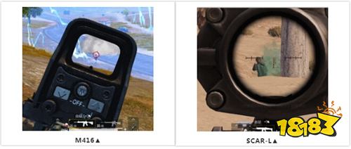 在视野对比方面,从机瞄的角度来看。SCAR-L的机瞄视野内容更多,但M416的机瞄更易看清敌人。在无倍镜的情况下两把枪各有优势~