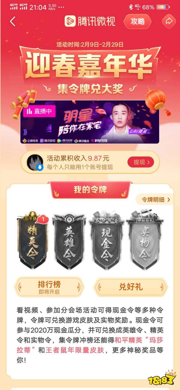 d. 现金令:收集到现金令牌的用户可获得一个瓜分资格,可在活动指定时间2020年2月29日20:20参与现金瓜分,瓜分总奖池不高于2020万元(含税)。