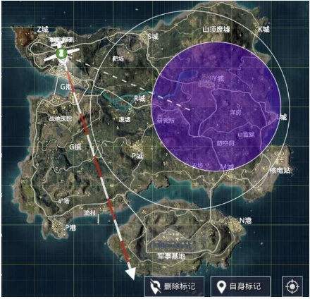 这个蓝紫色圈子,等于提前告诉我们,下一个安全区刷新的区域。