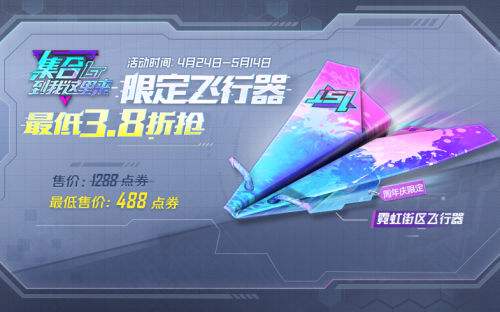 全服玩家在预购期内4月24日-4月30日进行预购周年庆限定飞行器,集结到最高的集结值,可在5月1日-5月14日最低折扣3.8折购买,花60点券预购的玩家,购买时可抵扣120点券。