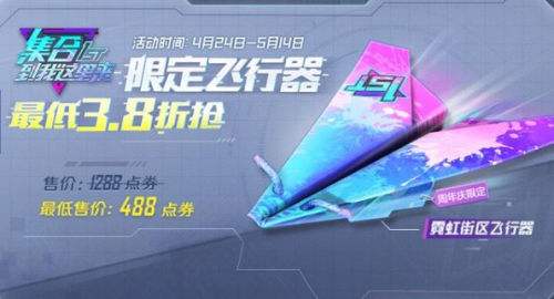和平精英霓虹街区飞行器怎样最省买?折扣活动推出,可获取新款皮肤。下面18183小编带来最低3.8折抢限定飞行器攻略,一起来看看吧。